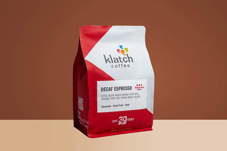 Our decaffeinated version of Klatch House Espresso: the hallmark of a chocolate body and dried fruit finish with tons of crema. This rich, syrupy sweet chocolate espresso blend has been a competition winner, time and time again—even playing a role in Heather Perry’s U.S. Barista Championship win. A five bean blend of renowned Indonesian and American Coffees, our Decaf House Espresso will change how you think about decaf.
